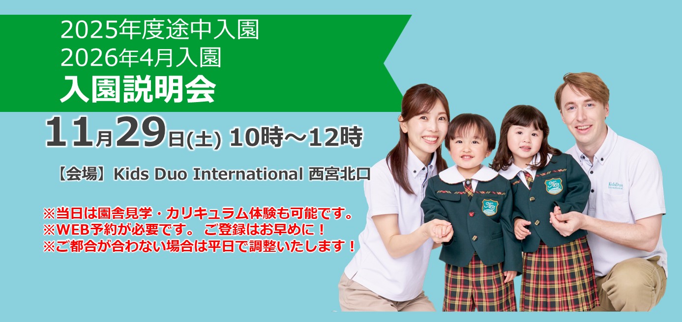 KDI西宮北口では、2025年途中入園をご検討中のご家庭向けに、個別説明会を開催しております。