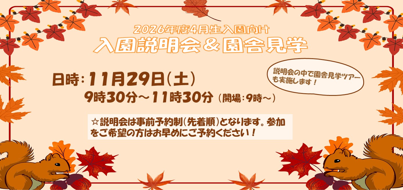 11月29日(土)入園説明会&園舎見学を開催いたします!