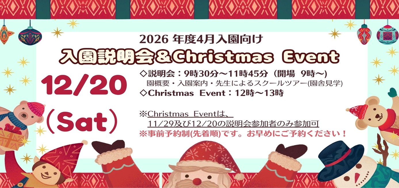 ・12月20日(土)入園説明会&Christmas Eventを開催いたします!